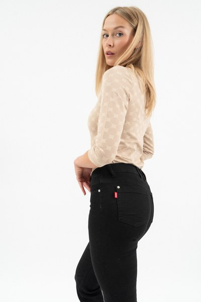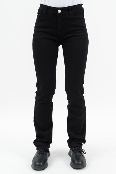 női straight farmernadrág - egyenes szabású - normál derékmagasság - push-up fazon - fém és műbőr címkével díszítve