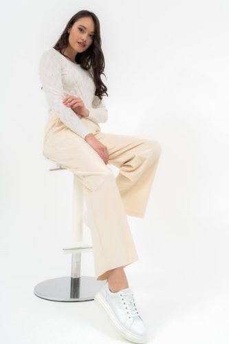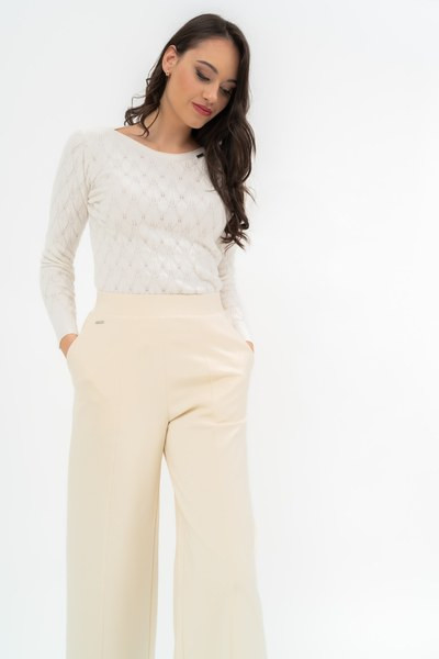 női bő szárú hosszúnadrág rugalmas anyagból - fémcímkével díszítve