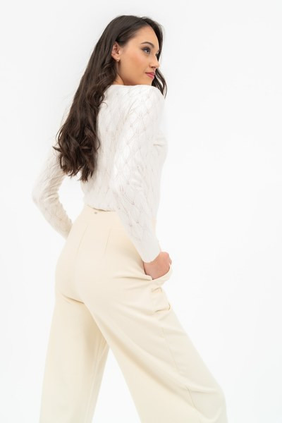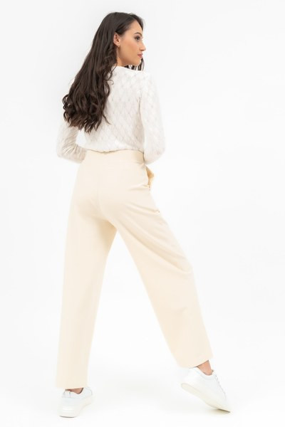 női bő szárú hosszúnadrág rugalmas anyagból - fémcímkével díszítve