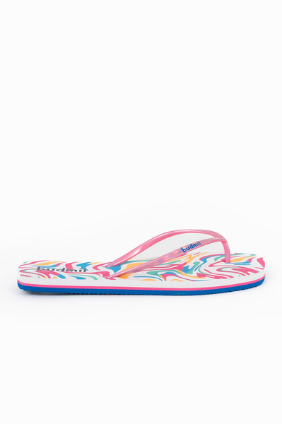 Női lábujjközi papucs .Nyomott mintával díszítve.