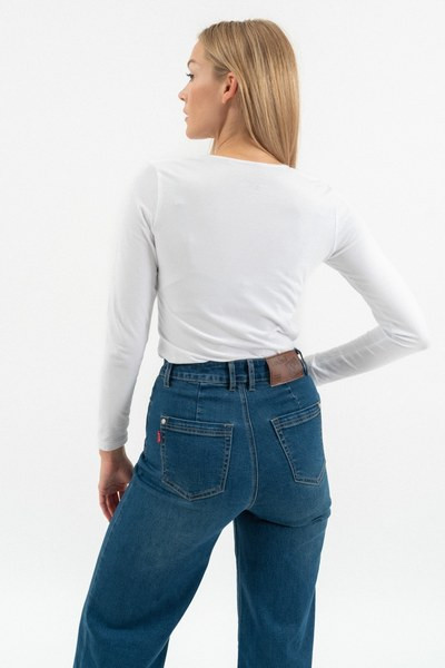 fehér színű Budmil vékony hosszú ujjú felso - 20250038-001 női póló. Felsőrészének az anyaga: 95% pamut-5% elasztán