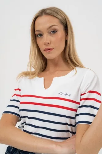 fehér-s.kék színű Budmil póló - 20331160-001 női póló. Felsőrészének az anyaga: 95% pamut-5% elasztán