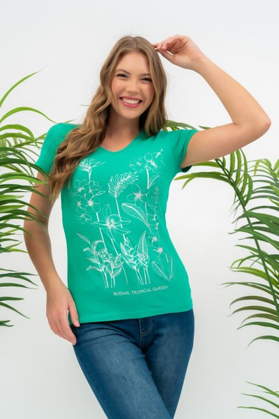 zöld színű Budmil póló - 20500194-002 női póló. Felsőrészének az anyaga: 95% pamut-5% elasztán