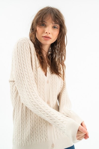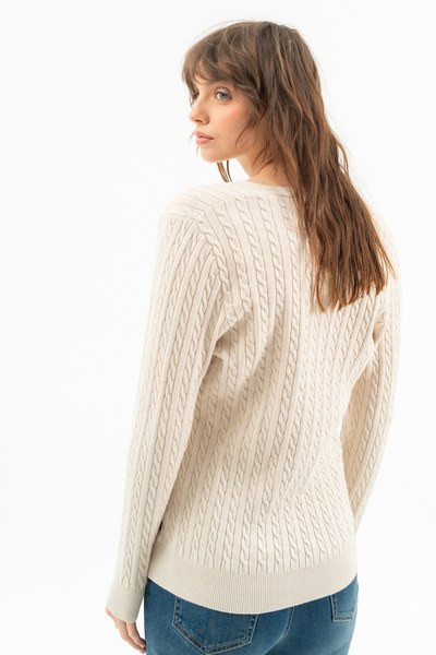bézs színű Budmil kötött pulóver - 20050828-001 női pulóver. Felsőrészének az anyaga: 50% viszkóz-30% poliészter-20% poliamid