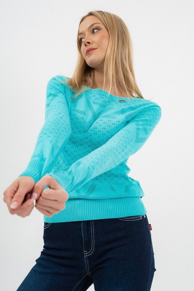 türkiz színű Budmil kötött pulóver - 20050838-002 női pulóver. Felsőrészének az anyaga: 100% pamut