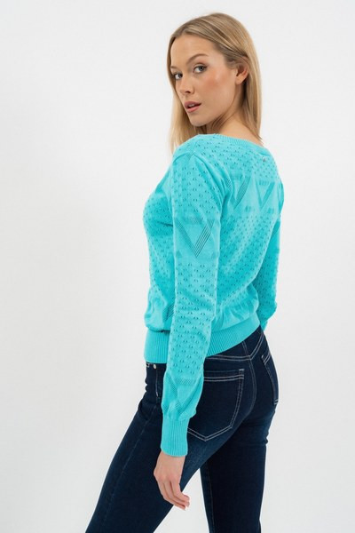 türkiz színű Budmil kötött pulóver - 20050838-002 női pulóver. Felsőrészének az anyaga: 100% pamut