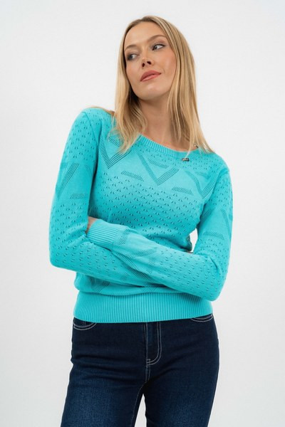 türkiz színű Budmil kötött pulóver - 20050838-002 női pulóver. Felsőrészének az anyaga: 100% pamut