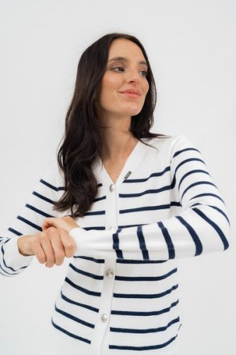 fehér-s.kék színű Budmil kötött pulóver - 20050840-001 női pulóver. Felsőrészének az anyaga: 50% viszkóz-30% poliészter-20% poliamid