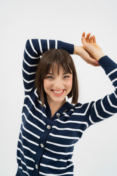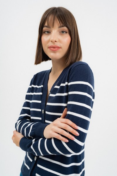 s.kék-fehér színű Budmil kötött pulóver - 20050840-002 női pulóver. Felsőrészének az anyaga: 50% viszkóz-30% poliészter-20% poliamid