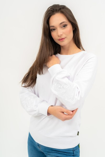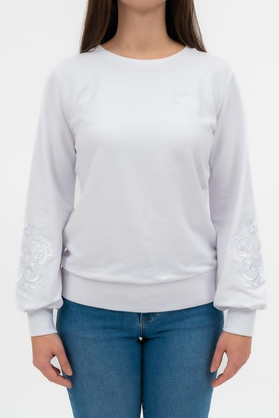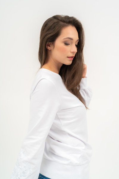 női felső rugalmas anyagból - alapanyaga belül bolyhozatlan - hímzett mintával díszítve