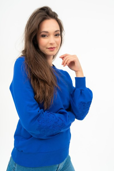 női felső rugalmas anyagból - alapanyaga belül bolyhozatlan - hímzett mintával díszítve