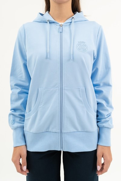 női kapucnis szabadidőfelső - rugalmas anyagból - alapanyaga belül bolyhozatlan - hímzett mintával díszítve