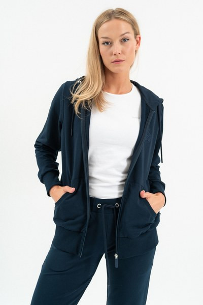 női kapucnis szabadidőfelső - rugalmas anyagból - alapanyaga belül bolyhozatlan - hímzett mintával díszítve