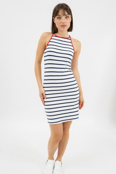 fehér-s.kék színű Budmil noi ruha - 20640085-001 női ruha. Felsőrészének az anyaga: 95% pamut-5% elasztán