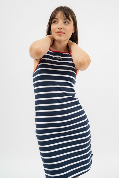 s.kék-fehér színű Budmil noi ruha - 20640085-002 női ruha. Felsőrészének az anyaga: 95% pamut-5% elasztán