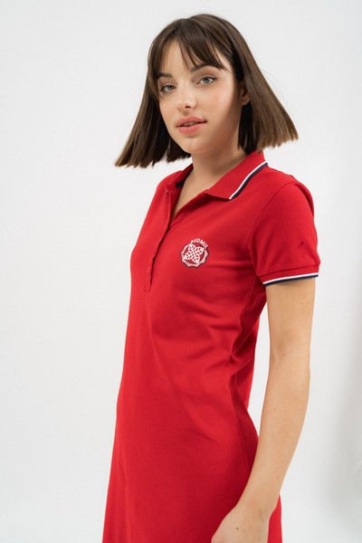 piros színű Budmil noi ruha - 20640086-001 női ruha. Felsőrészének az anyaga: 95% pamut-5% elasztán