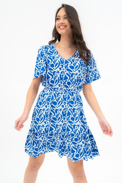 fehér-s.kék színű Budmil noi ruha - 20660019-002 női ruha. Felsőrészének az anyaga: 100% viszkóz