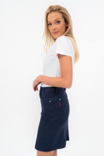 s.kék színű Budmil szoknya - 20610043-002 női szoknya. Felsőrészének az anyaga: 97%pamut- 3%elasztán