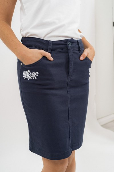 s.kék színű Budmil szoknya - 20610051-002 női szoknya. Felsőrészének az anyaga: 97%pamut- 3%elasztán