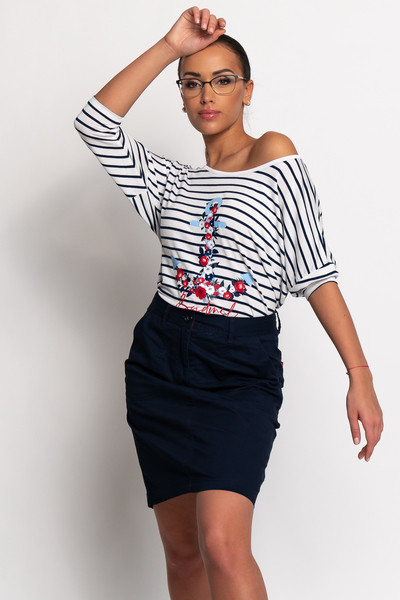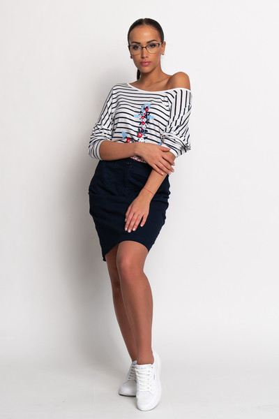s.kék-fehér színű Budmil szoknya - B20610029-001 női szoknya. Felsőrészének az anyaga: 98% pamut-2% elasztán