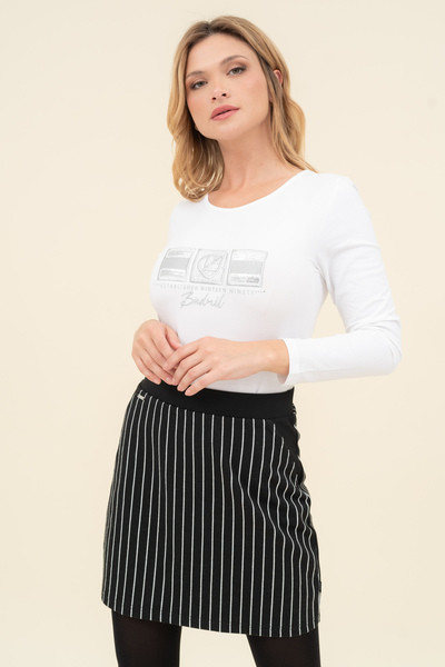 fekete melír-fehér színű Budmil szoknya - B20620005-001 női szoknya. Felsőrészének az anyaga: 85% poliészter-12% viszkóz-3% elasztán