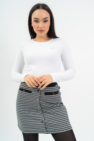 fekete-fehér színű Budmil szoknya - B20620006-001 női szoknya. Felsőrészének az anyaga: 68% viszkóz - 27% poliamid - 5% elasztán