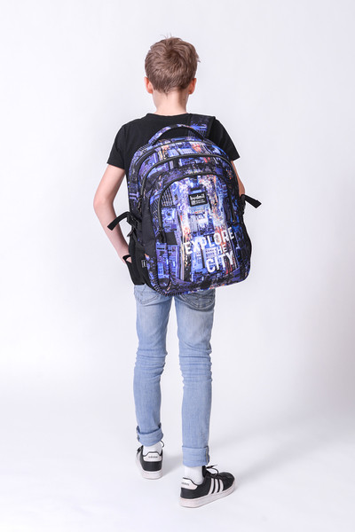 33x46x21 cm, 32L. Alapanyaga vízlepergető. Mindkét oldalán hálós kulacstartó zseb. Légcsatornás hátlap. Három különálló cipzáros rekesz. Az első rekeszben rendszerező zsebek.