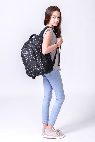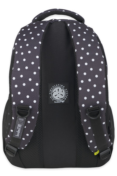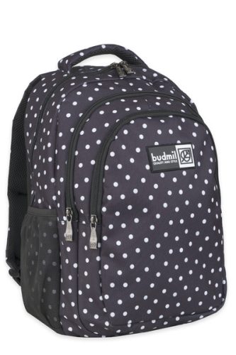 fekete-fehér színű Budmil ovális hátitáska - B10110254-013 női táska. Felsőrészének az anyaga: poliészter