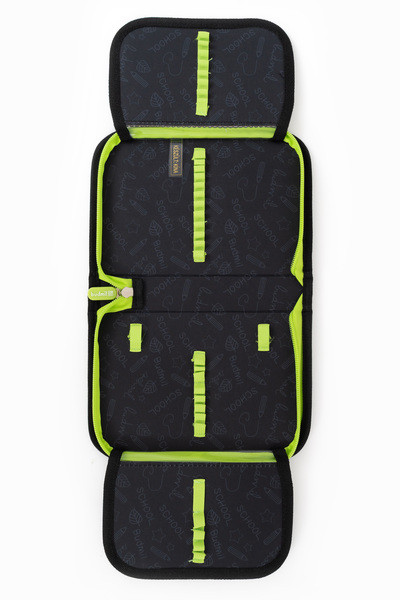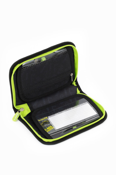 14x21,5x4 cm. Egyrekeszes nagyméretű tolltartó. Alapanyaga vízlepergető. Kihajtható ceruza és órarend tartóval. 34 ceruzahellyel.