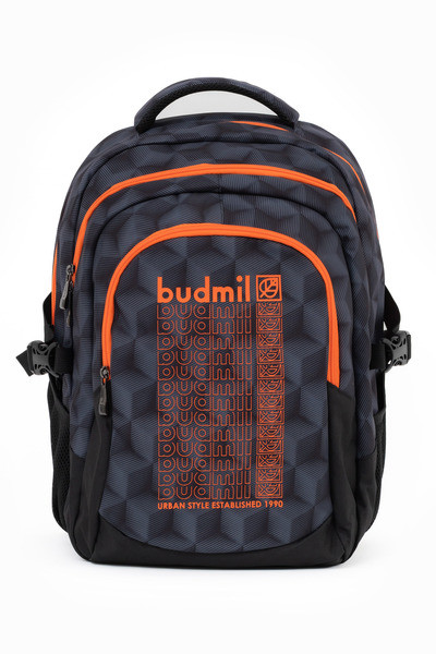 fekete-narancs színű Budmil ovális hátitáska - B10110149-090 unisex táska. Felsőrészének az anyaga: 100% poliészter