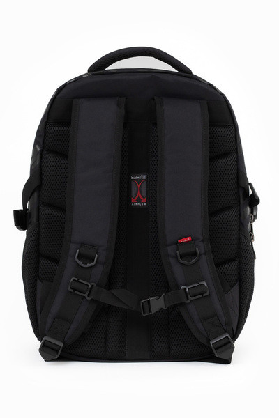 33x46x21cm, 0,87 kg. Alapanyaga vízlepergető. Mindkét oldalán hálós kulacstartó zseb. Légcsatornás hátlap. Három különálló cipzáros rekesz. Az első rekeszben rendszerező zsebek. Laptoptartó: 30X40cm.