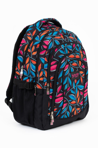 33x49x26 cm, 0,98 kg. Alapanyaga vízlepergető. Mindkét oldalán hálós kulacstartó zseb. Légcsatornás hátlap. Négy különálló cipzáros rekesz. A harmadik rekeszben rendszerező zsebek. Laptoptartó: 26 X 38 cm.
