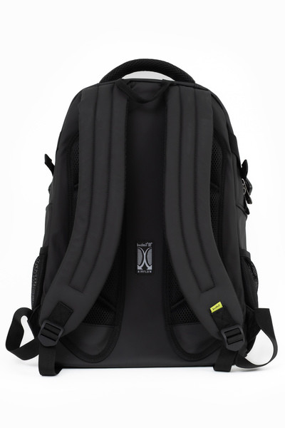 32x47x16 cm, 0,96 kg. Alapanyaga vízlepergető. Mindkét oldalán hálós kulacstartó zseb. Légcsatornás hátlap. Három különálló cipzáros rekesz. Az első rekeszben rendszerező zsebek. Laptoptartó: 26 X 38 cm.