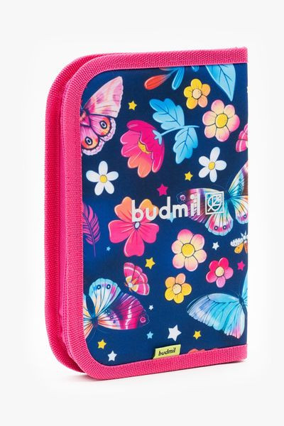 14x21,5x4 cm - egyrekeszes nagyméretű tolltartó - alapanyaga vízlepergető - pillangós mintával - kihajtható órarendtartóval - 32 ceruzahellyel