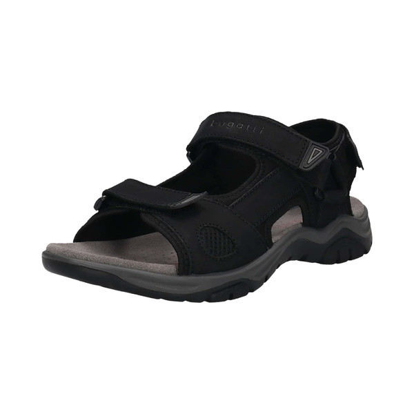 fekete színű Bugatti AS780-2569 1010 Férfi szandál. Felsőrészének az anyaga: Bőr felsőrész. Textil belső. Bőr talp.