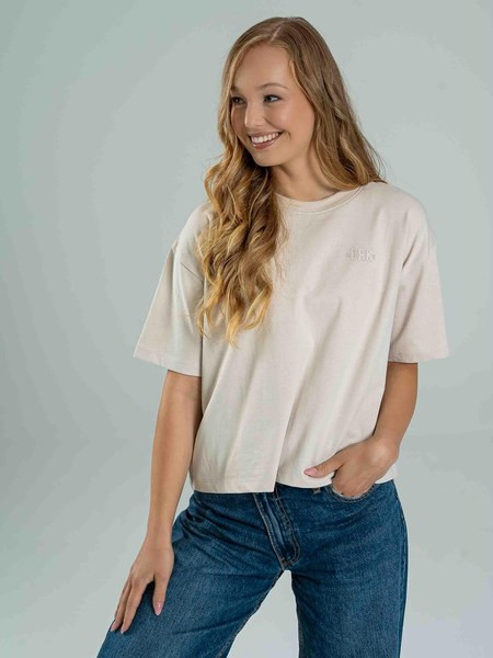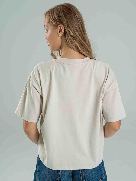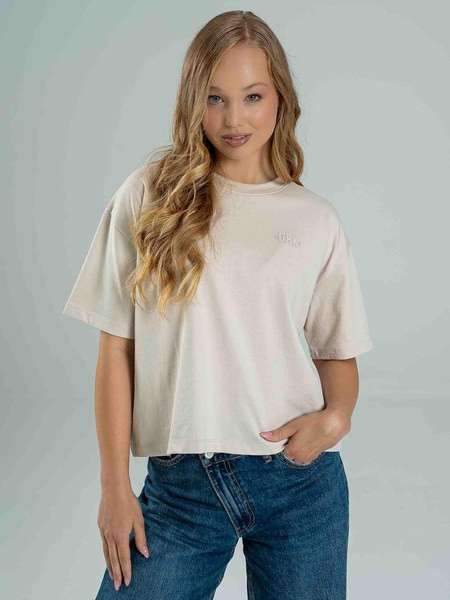 bézs színű Dorko Zora női póló. Felsőrészének az anyaga: Pamut