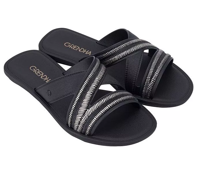 Fekete színű Grendha Buriti Rafia - 18707-AO056 női papucs. Felsőrészének az anyaga: Szinetikus