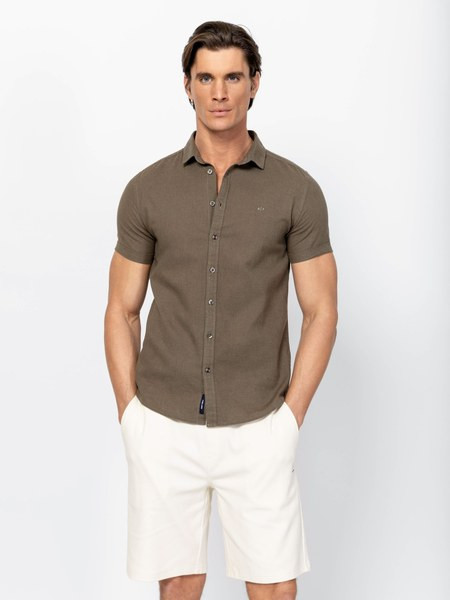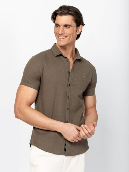 Zöld színű Heavy Tools Reevas26 Khaki férfi ing. Felsőrészének az anyaga:
