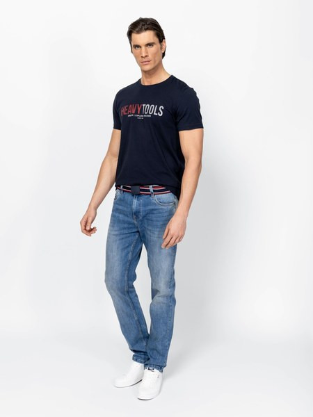 Kék színű Heavy Tools Merlos Aqua férfi póló. Felsőrészének az anyaga: