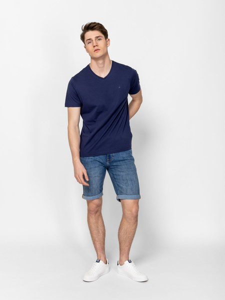 Kék színű Heavy Tools Moneys26 Moonlight férfi póló. Felsőrészének az anyaga: