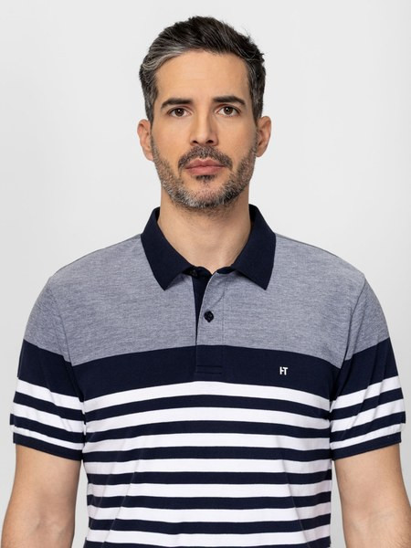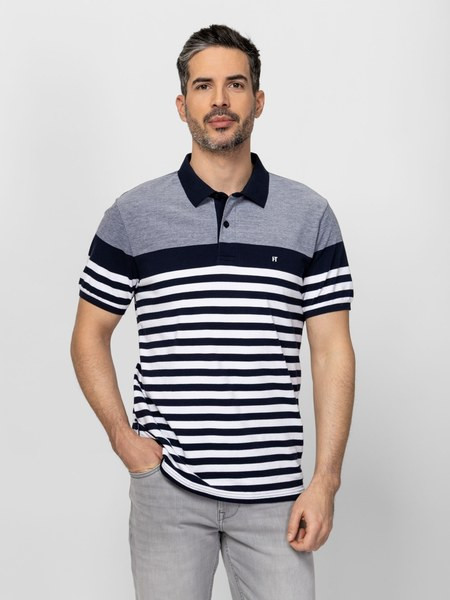 Kék színű Heavy Tools Dorso Navy férfi póló. Felsőrészének az anyaga: