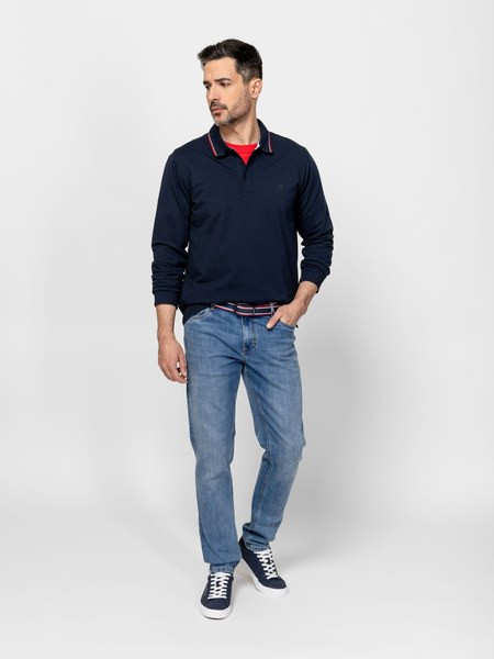 Kék színű Heavy Tools Conrad Navy férfi póló. Felsőrészének az anyaga: