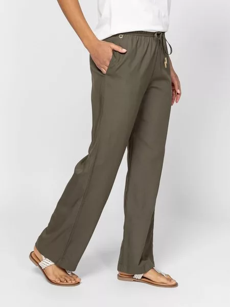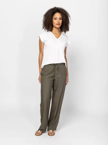 Zöld színű Heavy Tools Franka Olive női nadrág. Felsőrészének az anyaga: