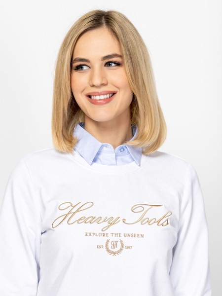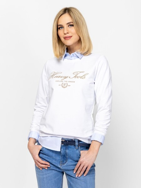 Fehér színű Heavy Tools Dinna White női póló. Felsőrészének az anyaga: