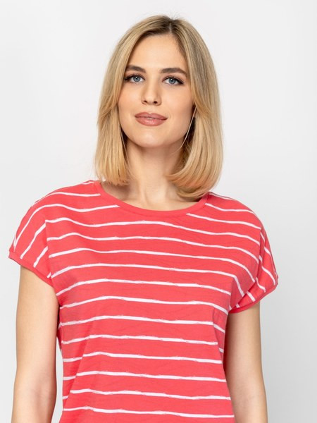 Rózsaszín színű Heavy Tools Mia Candy női póló. Felsőrészének az anyaga: