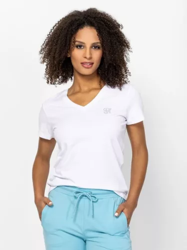 Fehér színű Heavy Tools Mavisi White női póló. Felsőrészének az anyaga: