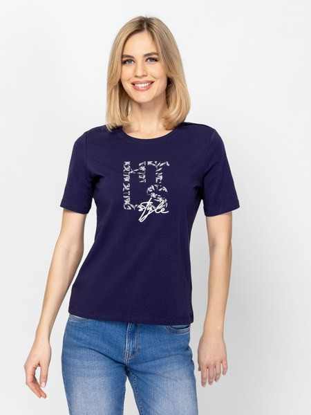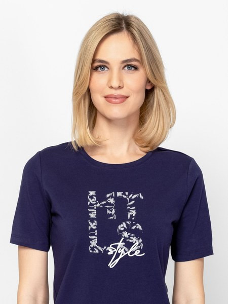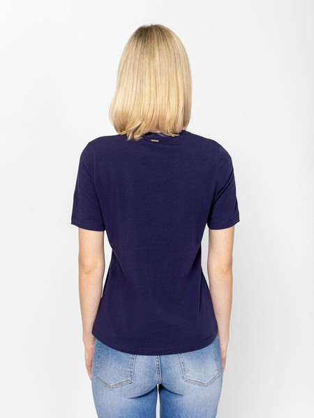 Kék színű Heavy Tools Mertic Navy női póló. Felsőrészének az anyaga: