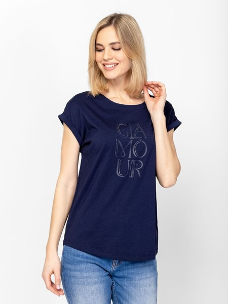Kék színű Heavy Tools Malenas26 Navy női póló. Felsőrészének az anyaga: