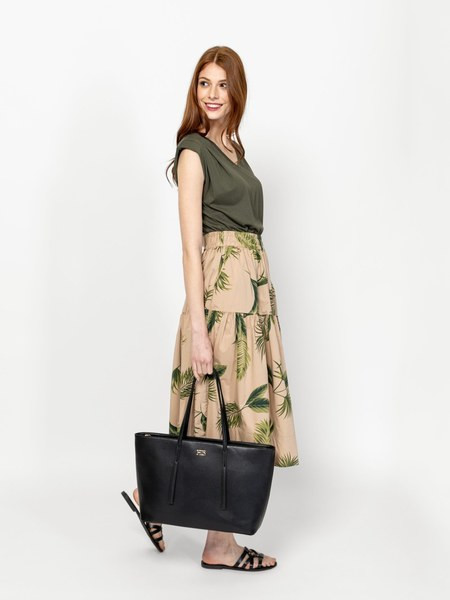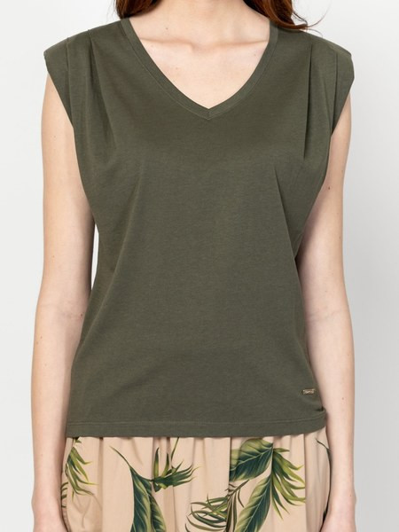 Zöld színű Heavy Tools Biana Olive női póló. Felsőrészének az anyaga:
