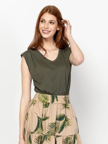 Zöld színű Heavy Tools Biana Olive női póló. Felsőrészének az anyaga: